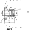 Подобно тому, как изображено на фиг.2, также и здесь пропускное отверстие 1.1 в области второго осевого конца 1.3 снабжено ступенчатым расширением поперечного сечения. Благодаря этому, во-первых, достигается еще меньшая толщина стенки осевого выступа в самой наружной осевой области, а во-вторых, становится возможной описанная выше передача усилий сдвига от плавкого предохранительного элемента на тело 1 затвора. Это ступенчатое расширение поперечного сечения в пропускном отверстии 1.1 проходит, в частности, от внешнего осевого конца 1.3 максимально до половины введенного плавкого предохранительного элемента, т.е. в данном случае максимально до 4 мм по оси в пропускное отверстие 1.1. Другой вариант выполнения имеет (как показано) протяженность этого расширения поперечного сечения примерно 2 мм, т.е., например, четвертую часть протяженности в осевом направлении плавкого предохранительного элемента.