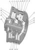 Ведущие колодки 9 удерживаются в корпусе 1 между приливами корпуса и колец 7, 8 с помощью подпружиненных направляющих 17, которые находятся в отверстиях, выполненных в корпусе 1 и кольцах 7 и 8, и фиксируются шплинтами.