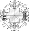 Пары диаметрально разнесенных цилиндрических отверстий 54 гидравлически связаны радиальными 58 и осевым 59 каналами с полостью 35 исполнительного силового гидроцилиндра. Полости отверстий 54 задающих силовых гидроцилиндров и полость 35 исполнительного силового гидроцилиндра, радиальных каналов 58 и осевого канала 59 на ведущем зубчатом диске 5 пробуксовки заполнены несжимаемой рабочей жидкостью. Радиальные каналы 58 на периферийных участках 51 ведущего зубчатого диска пробуксовки закрыты пробками 60 (см. фиг.2, 3, и 7). Каждый шток 52 (37) гидропривода 34 механизма 11 автоматического останова снабжен уплотнительными резиновыми кольцами 61 (см. фиг.2 и 7).