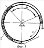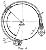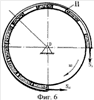 Второй этап заключается в определении величины постоянного шага между торцами фрикционных накладок (а) и (б) на набегающей ветви (I) тормозной ленты 2. Сначала согласно фиг.5 определяют центральный угол между торцами накладок (а) и (в). Для этого используют зависимость вида