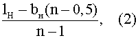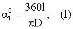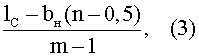 где l – расстояние по дуге ленты 2 между торцами накладок (а) и (в); D – диаметр тормозной ленты (D=dш+2hн); dш – диаметр тормозного шкива; hн – толщина фрикционной накладки 3. В дальнейшем пользуются значением произведения ширины фрикционной накладки 3 на количество накладок (n), которые будут размещены на угле 1. После чего от общей длины l набегающей ветви (I) ленты 2 отнимают длину, которую занимает намеченное количество накладок (n). Для распределения длины, которая осталась для постоянных зазоров между фрикционными накладками (а) для набегающей ветви ленты, используем зависимость вида