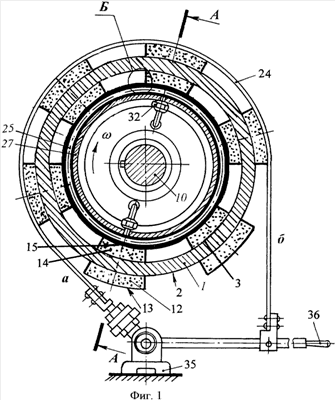обратная – «рабочая поверхность 15 дополнительной накладки 14 (индекс 3) – фрикционное покрытие 25 наружной поверхности 26 торовой резиновой пневмокамеры 27 (индекс 4)» при соблюдении условия расположения ее материалов: Н4>Н3 (твердость) и АН4>АН3 (площади поверхностей касания).