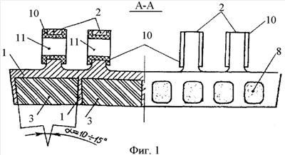 Основания частей составных вставок выполнены в форме усеченной пирамиды и могут иметь геометрический вид, выбранный из ряда: треугольник, четырехугольник, пятиугольник, шестиугольник.