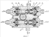 Кран двухконтурный включает корпус 1 с двумя каналами (контурами) и штуцерами П1 и П2 (подача рабочей среды). Внутри каналов корпуса 1 размещены клапаны трубчатой конструкции в виде полого цилиндра, состоящие из двух элементов: большого клапана 2 с контактным торцом и зубьями сбоку, нарезанными в виде рейки. Втулка 3 ввернута в большой клапан 2 и имеет отверстие в боку для протока рабочей среды и бурт для зацепления с малым клапаном 4. Клапан 4 имеет контактный торец, выполненный в виде бурта. На втулке 3 установлена пружина, обеспечивающая герметичный контакт торцов клапанов 2 и 4 с опорами 5, имеющими для этого уплотнительную вставку. Все четыре опоры 5 посредством резьбы на спицах ввернуты в штуцеры «вход» и «сброс» соответственно. Опоры 5 имеют протоки для рабочей среды. Сами эти штуцеры вворачиваются в каналы корпуса 1. Зубья клапанов 2 находятся в зацеплении с зубьями шестерни штока 6 с закрепленной на его хвостовике рукояткой, поворотом которой шестерня перемещает клапаны 2 и 4 в противоположных направлениях. Шток 6 установлен в корпусе 1 перпендикулярно оси клапанов 2 и 4. Клапаны 2 и 4 имеют уплотнительные элементы, которые разделяют полости «вход», П1 /П2/ «сброс» и предотвращают выброс рабочей среды наружу через шток 6.