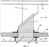 Элемент 3 окружает участок 4 элемента 2. Боковые стенки 12 элемента 3 препятствуют перемещению поперек наклонной поверхности. Нижние поверхности 11 взаимно зацепляются с нижними поверхностями 6, чтобы препятствовать относительному перемещению элементов 2, 3 перпендикулярно наклонной поверхности, то есть перпендикулярно плоскости стенки или верха резервуара, за исключением происходящего при скольжении вдоль наклонной поверхности.