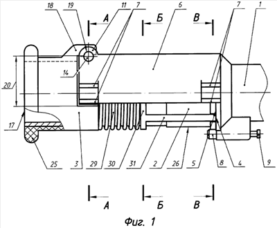 Следует отметить, что выполнение боковых выступов 13 непосредственно на стволе 2 обуславливает применение на втулке 30 продольного разреза 33, позволяющего монтировать втулку 30 на ствол 2.