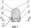 Пуля состоит из головной части 1, хвостовой части 2, в теле которой выполнены отверстия 3, расположенные под углом к продольной оси 4 и симметрично относительно поперечных осей 5 пули. На наружной поверхности пули выполнено углубление 6, в котором расположен пыж-контейнер, состоящий из двух частей, выполненных в виде полуколец 7 и 8.