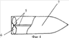 Поставленная задача достигается снабжением нарезного арт. снаряда стабилизатором с винтовым оперением, раскручивающим снаряд в сторону, противоположную вращению, полученному в стволе. Парашютирующий эффект оперения стабилизатора в сочетании с вновь приобретенным вращением переориентирует падающий арт. снаряд в полете, заставляя его попасть в цель ударной частью боеголовки (фиг.2), а не боковой, как показано на фиг.1.