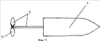 На фиг.3 показан арт. снаряд с жестко закрепленным оперением стабилизатора, сделанный в виде мины. На фиг.4 показан арт. снаряд в разрезе, содержащий раздвижной стабилизатор внутри корпуса, выдвигающийся в заданной точке траектории. На фиг.5 показан арт. снаряд с выдвинутым оперением. На чертежах обозначены: 1 – продольная ось ствола артиллерийского орудия, 2 – траектория полета снаряда, 3 – линия горизонта, 4 – продольная ось вращения снаряда, 5 – стабилизатор, 6 – винтовое оперение стабилизатора, 7 – корпус снаряда.