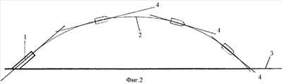 Задачей изобретения является совмещение продольной оси вращения снаряда с касательной к траектории его движения в ее нисходящей части.