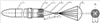 – узлов крепления гибких связей к донному вертлюгу, удаленных от оси корпуса и расположенных на окружности диаметром 0,5 1,0 калибра головной части, и скрепленных между собой на расстоянии 1,0 2,0 калибра от узлов крепления гибких связей, уменьшить время парирования начальных угловых возмущений при отделении ОГЧ от реактивного двигателя, повысить устойчивость головной части, обеспечить полет с нулевыми углами атаки, обеспечить вертикальный подход к цели, что повышает боевую эффективность ОГЧ. При расстоянии от узлов крепления гибких связей до места их соединения между собой менее 1,0 калибра головной части возрастает реакция в гибких связях, деталях их крепления, что приводит к необходимости упрочнять и утяжелять хвостовую часть корпуса головной части. Смещение центра масс, в связи с этим, приводит к ухудшению устойчивости, появлению колебаний корпуса и снижению боевой эффективности. Увеличение указанного расстояния свыше 2 калибров головной части, а также уменьшение удаления узлов крепления гибких связей от оси корпуса менее 0,5 калибра приводит к увеличению времени затухания начальных углов атаки, исчезают положительные свойства многоточечного крепления по сравнению с одноточечным.