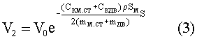 Скорости на пассивном участке полета с отделяемым V1 и неотделяемым V2 стартовыми двигателями выражаются следующими зависимостями: