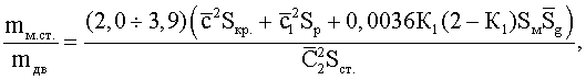 – удлинение ракеты; lp – длина маршевой ступени, м; Dм – диаметр миделя маршевой ступени, м; Sм – площадь миделя маршевой ступени, м2; Sp, Sкр., Sст. – площадь рулей, крыльев, стабилизаторов, м2;