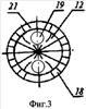 Поток гранул сухого льда поступает к заряду ВВ через два центральных 19 и два тангенциальных отверстия 20 (фиг.2).