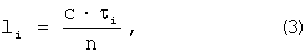 Если перейти к пространственным координатам li и l от временных координат i и  , то применяемый оптоэлектронный модулятор 6 снижает мощность отраженного оптического сигнала от областей тракта, не соответствующих i-ой l, что препятствует насыщению фотоприемника 7 и возникновению мертвых зон. Расстояние li от начала волоконно-оптического тракта до начала контролируемой области l, сигнал от которой поступит на вход фотоприемника 7, определяется по формулам