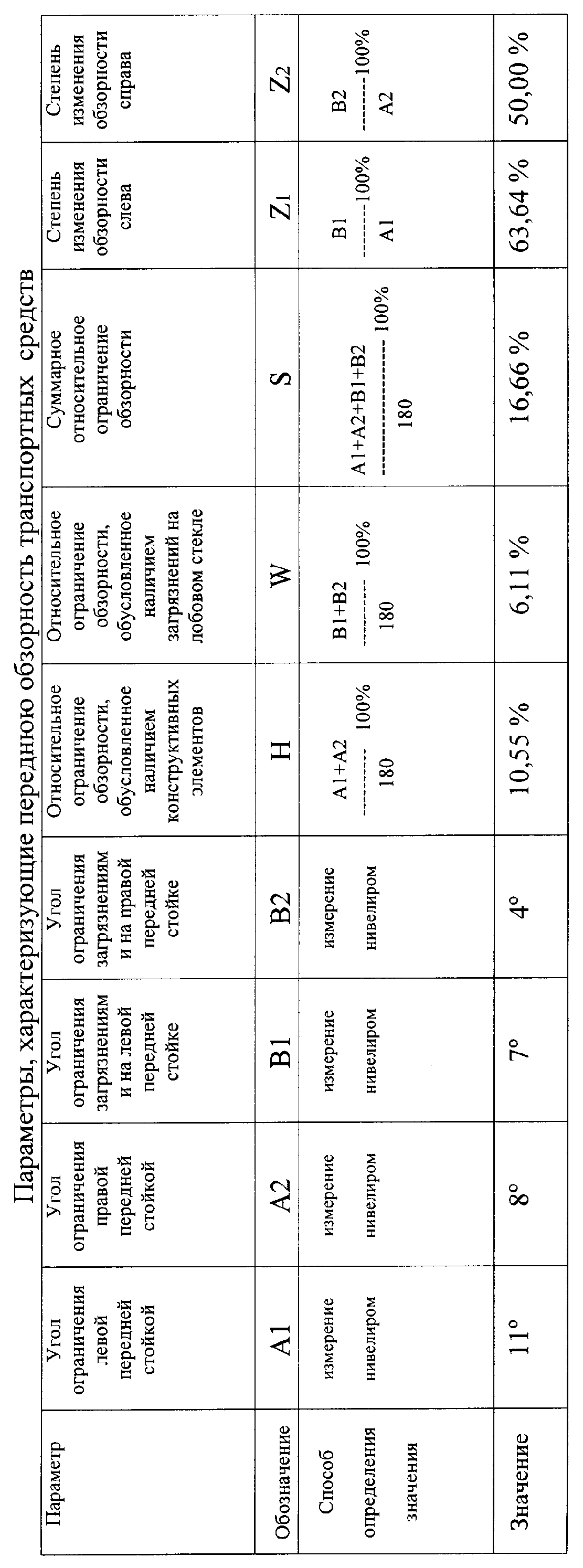 Результаты измерений, представленные в таблице, позволяют сравнить (оценивать) транспортные средства по параметрам передней обзорности и определить из них наиболее приспособленные, имеющие минимальные значения параметров при прочих равных условиях.