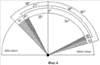 Угол ограничения обзора 26 и его расположение относительно направления движения 24 транспортного средства 25 соответствует данным диаграммы, которую получают, используя предлагаемый способ определения обзорности. При исследовании механизма ДТП значение угла ограничения обзорности 26 учитывает наличие загрязнений на лобовом стекле 19, направление движения пешехода (слева или направо). Относительную величину ограничения обзорности – суммарное относительное ограничение обзорности S (%) определяют соотношением, в числителе которого сумма углов ограничения обзорности с левой и правой стороны А1+А2+В1+В2 (град), а в знаменателе – значение градусного сектора передней обзорности, равное 180°.
