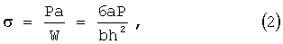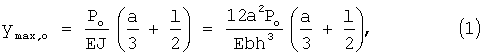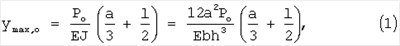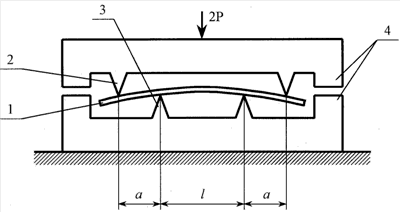 где Е – модуль Юнга, J – момент инерции, l – расстояние между внутренними опорами (3), а – расстояние между ближайшими внутренней (3) и наружной (2) опорами, b – ширина образца (1). При этом напряжение