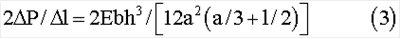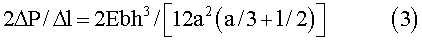 При l=20 мм, b=а=10 мм, h=0,7 мм и Е=2·104 кг/мм2 (сталь) наклон 2 Р/ l=8 кг/мм.
