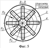 Расположение деформирующих тел 11 на различном расстоянии от центра обкатника R1, R2, R3 позволяет за одно испытание получить на каждом образце несколько дорожек качения (на фиг.5 три дорожки качения). Максимальная скорость будет при качении шаров по радиусу R3, минимальная – по R1. Соответственно, при R3 соотношение качение-проскальзывание будет больше, чем при R2, а при R2 больше, чем при R1. В результате появляется возможность установить влияние на изнашивание соотношения качение-проскальзывание, а также различной скорости V обкатывания.