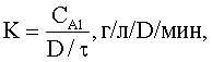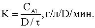 K – коэффициент пропорциональности между концентрацией алюминия и скоростью изменения оптической плотности, г/л/D/мин.
