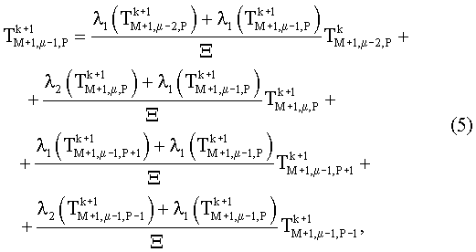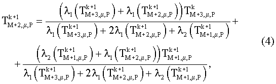 в граничной точке [М+1, µ-1, Р]: