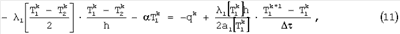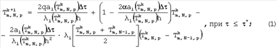 – шаг сетки по времени; q – плотность теплового потока, отнесенная к единице площади поперечного сечения пространственной сетки и выраженная в Вт/м2;