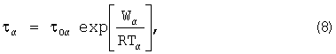 где В – коэффициент, зависящий от объема кинетической единицы, и для сегментов имеет смысл периода колебаний 0 сегмента около положения равновесия (см. Бартенев Г.М., Зеленев Ю.В. Физика и механика полимеров. М.: Высшая школа, 1983, с.130). Характерное время 0 процесса -релаксации зависит от температуры