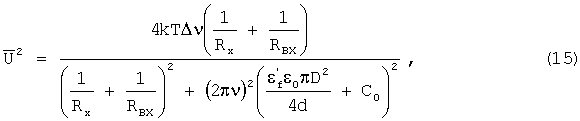 Для среднего квадрата напряжения электромагнитных флуктуаций полимерной системы, помещенной в первичный измерительный преобразователь емкостного типа, при том условии, что величина сигнала намного больше, чем шум измерительной системы, можно записать следующее выражение