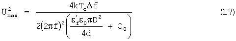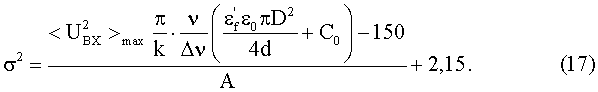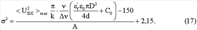 Данный факт позволяет получить однозначную зависимость между диэлектрической проницаемостью  f, максимумом среднего квадрата напряжения электромагнитных флуктуаций на зажимах первичного преобразователя при температуре стеклования Т , конструктивных параметров преобразователя D, d, C0 и коэффициентом равновесной жесткости полимера
