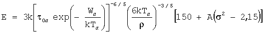 Сущность изобретения заключается в том, что измеряют температуру Т , энергию активации W процесса -релаксации для испытуемого образца дилатометрическим методом; исследуемый материал помещают в конденсаторный первичный измерительный преобразователь, измеряют – средний квадрат тока тепловых электрических флуктуации, соответствующую gx – активную шумовую проводимость при температуре испытаний Т, вычисляют модуль упругости при растяжении Е по формуле: