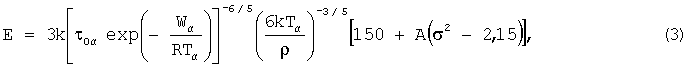 Сущность изобретения поясняется следующим образом. Известно, что свойства эластомеров, находящихся в высокоэластическом состоянии, во многом обусловлены процессами молекулярной подвижности их структурных элементов. В качестве кинетических, определяющих упругие свойства сетчатых полимеров выступают сегменты – участки полимерной цепи, содержащие N мономерных звеньев. При бесконечно малой деформации модуль упругости при растяжении определяется (см. Нарисава И. Прочность полимерных материалов / Под ред. проф. Т.Екобери. Пер. с японского к.ф.-м.н. Ю.Н.Товмасяна. – М.: Химия, 1987. – 400 с.) как:
