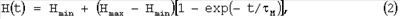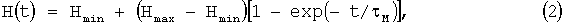 Считается, что импульсное магнитное поле образуется током I=I0 max-I0 дополнительно к постоянно действующему току подмагничивания I0, поэтому при действии импульсного магнитного поля достигается результирующая напряженность магнитного поля в магнитной системе 5, равная Нmax. При этом само магнитное поле в ферритовом кольце изменяется в функции времени по экспоненциальному закону: