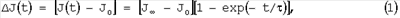где J0 и J – соответственно значения намагниченности непосредственно после изменения напряженности Н магнитного поля в момент t=0 и после установления нового равновесного состояния, – константа, характеризующая скорость процесса и называемая постоянной времени релаксации. Значение зависит от природы магнитной вязкости и в различных материалах может изменяться от 10-9 секунды до нескольких десятков часов в зависимости от технологии изготовления ферроматериалов и их структуры.