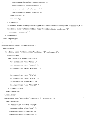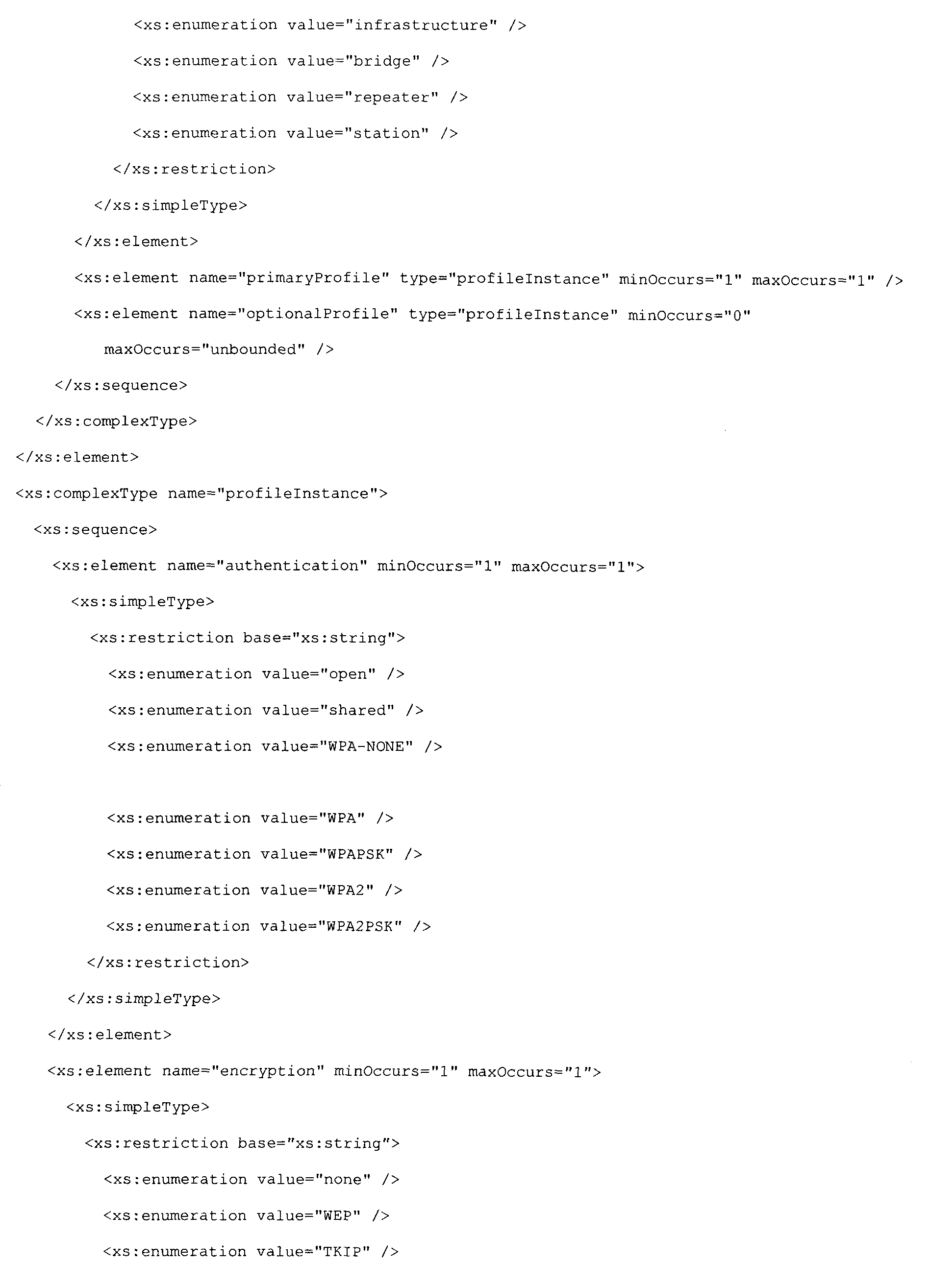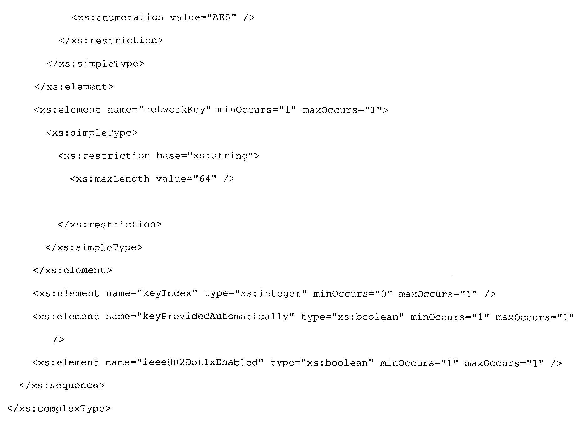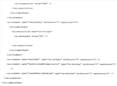 Примерная XML схема для параметров настройки беспроводных сетей следующая: