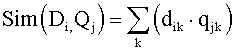 Затем вычисляется мера подобия между Di и Qj как скалярное произведение этих векторов, которое представляет собой: