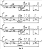 Формирование фазы “пауза” в двухпроводной линии связи осуществляется следующим образом. Микропроцессор 3 через блок 5 открывает на время Тс2, Тс3 или Тс5 транзисторы 7 и 9 и закрывает транзисторы 6 и 8. При этом ток от источника питания 2 протекает через открытый транзистор 7, провод 29, извещатели 13, провод 28, открытый транзистор 9 и резистор 10 на выход положительной полярности блока 2 питания. С резистора 10 снимается напряжение U~U2 и подается на аналоговый вход микропроцессора 3. Уровни напряжения U1 и U2 примерно одинаковы, так как отсутствует цепочка из диода и резистора в конце двухпроводной линии связи. Таким образом, фазы “импульс” и “пауза” отличаются направлением тока в двухпроводной линии.