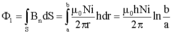 Здесь Вn – магнитная индукция, создаваемая током Ni бесконечно длинного проводника на расстоянии r. Если взять производную Ф по времени и умножить результат на число витков w тороидальной катушки 13 и учесть, что по проводу прямоугольной катушки 1 течет переменный ток , то получим выражение для вычисления действующего значения тока в прямоугольной катушке 1