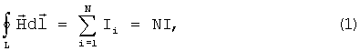Если контур обхода 5 длиной L не охватывает бесконечно длинный проводник с током NI (фиг.4), то циркуляцию вектора также определяем по формуле (3). Знаки перед членами HiRi в этом случае будут разными. Если угол между векторами и <90° (фиг.4), то знак перед HiRi, будет положительным, если >90°, то знак перед HiRi будет отрицательным, и если =90°, то HiRi=0.
