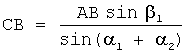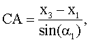 Затем определяем угол =180°-( 1+ ) треугольника АСВ. По теореме синусов из треугольника АСВ находим сторону СВ, которая соответствует дальности от точки В(х2, y2) до источника магнитного поля, расположенного в точке С(х3, y3)