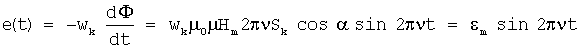 где µ0 – магнитная постоянная, µ – магнитная проницаемость сердечника, Sk – площадь поперечного сечения измерительной катушки 7 и – угол между векторами и (фиг.7, с).