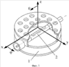 Вторая пластина 14 и вторая объемная ячейка 11 выполнены также в виде единой детали из алюминиевого сплава АМг6м. Внутренний диаметр ячейки равен 227 мм. На пластине 14 просверлены девятнадцать отверстий 15 диаметром 35 мм. Центры отверстий 15 расположены в вершинах равносторонних треугольников со стороной 47,92 мм. На объемных ячейках 8, 11 выбраны пазы 9, 10, 12, 13 в виде полуцилиндров радиусом 5 мм.