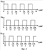 Датчик положения ротора электрического двигателя работает следующим образом. Магнитное поле постоянных магнитов 7 и 8 распространяется в магнитопроводящем диске 6. При вращении ротора 5 происходит срабатывание магниточувствительных элементов при попадании их в зоны действия магнитного поля (при прохождении магнитопроводящего участка диска над магниточувствительным элементом) и их выключение при прохождении над датчиком прорези. В результате на выходах трех датчиков формируются три импульсные последовательности, показанные на фиг.2, которые образуют трехразрядный цифровой код, отображающий положение ротора электрического двигателя На фиг.2 символами UА, UB, UC обозначены выходные сигналы трех магниточувствительных элементов 2, 3 и 4.