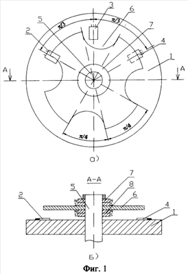 – магнитопроводящий диск имеет четыре прорези, выполненные по линии окружности на расстоянии друг от друга, соответствующем углу /2, и шириной, соответствующей углу /4;