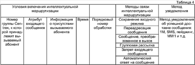 5. Способ по п.4, в котором атрибут вызываемого абонента представляет собой один из следующих параметров: номер вызываемого абонента и номер группы пользователей, к которой принадлежит вызываемая сторона; атрибут входящего вызова содержит по меньшей мере один из следующих параметров: номер вызывающего абонента, тип носителя входящего вызова и атрибут входящего вызова; информация о присутствии вызываемого абонента представляет собой по меньшей мере один из следующих параметров: явную информацию о присутствии и скрытую информацию о присутствии вызываемого абонента; причем формирование по меньшей мере одного условия включения интеллектуальной маршрутизации входящего вызова с соответствующей информацией включает один из следующих вариантов: формирование одного условия переключения интеллектуальной маршрутизации с одним атрибутом вызываемого абонента, атрибутом входящего вызова, информацией о присутствии вызываемого абонента и значением текущего времени и формирование нескольких условий переключения интеллектуальной маршрутизации с по меньшей мере двумя атрибутами вызываемого абонента и теми же атрибутами входящего вызова, информацией о присутствии вызываемого абонента и значением текущего времени.
