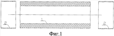 На фиг.1 представлен первый этап – изготовление изолятора и металлических манжет, 1 – трубчатый высоковольтный изолятор, 2 – манжеты.
