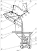 1. Машина для загрузки и разбрасывания минеральных удобрений, состоящая из рамы, опорных колес, бункера, устройства дозирования и разбрасывания, устройства загрузки и кронштейна с иглами, отличающаяся тем, что рама содержит два кольца, которые поддерживают стойки и раскосы, лонжероны, к которым приварена рамка опорная, опоры, упор, дуга упорная, дуги направляющие и другие элементы, и рассчитана на грузоподъемность не менее 800 кг при загрузке и разбрасывании, на осях, прикрепленных к раме, установлены колеса опорные, рамка опорная и опоры приварены к раме под таким углом, чтобы они были в одной плоскости с касательной к задним колесам опорным, кроме того, на них установлены штыри, на раме шарнирно установлены кулисы, а на них захват, к которому прикреплена дорожка, при этом ее профиль такой, чтобы захват совершал плоскопараллельное движение при движении кулисы по дуге, а в конце траектории круто опускался, дорожка перемещается по ролику, установленному на стойке, шарнирно присоединенной к ползуну, который можно зафиксировать на дуге направляющей в двух положениях, причем стойка соединена с ползуном также пружиной, что позволяет ей отклоняться, вращаясь в шарнире, при движении вперед кулисы с захватом, на малое кольцо рамы через уголки опираются два крестообразных ножа, к плите центральной тяги навесной системы трактора прикреплен кронштейн, на дуге которого размещены иглы.