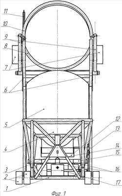 – рама содержит два кольца, которые поддерживают стойки и раскосы, лонжероны, к которым приварена рамка опорная, опоры, упор, дуга упорная, дуги направляющие и другие элементы, и рассчитана на грузоподъемность не менее 800 килограммов при загрузке и разбрасывании;