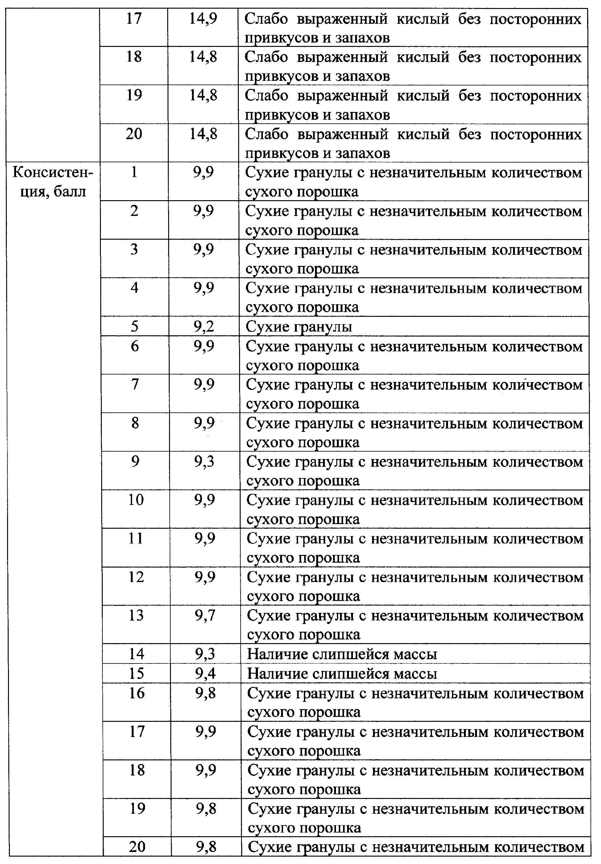 Качественные показатели творога вакуумной сушки приведены в таблице.