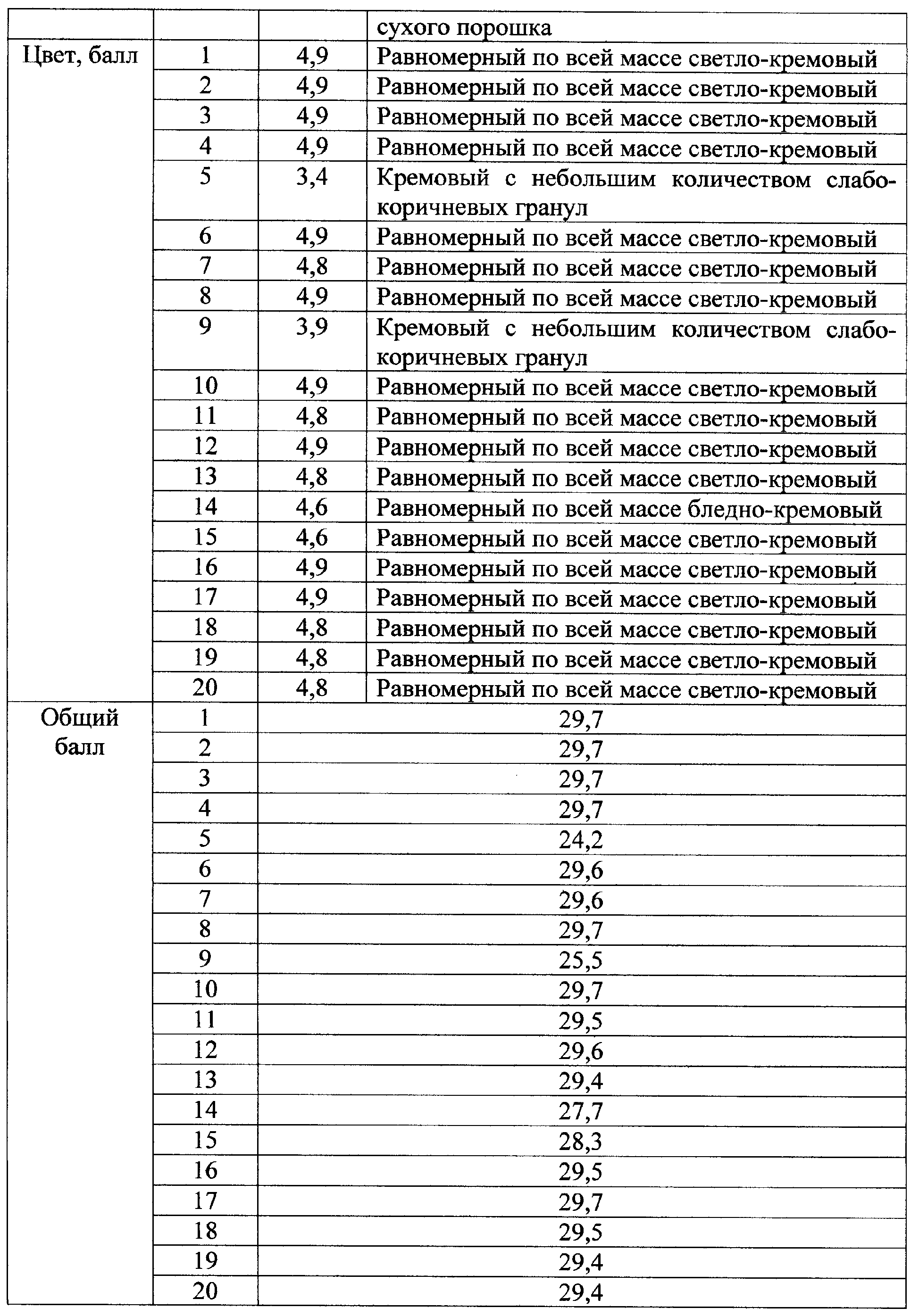 Пример 15. Выполняют по примеру 1, при сушке творога с диаметром гранул 4 мм. Гранулы между собой слипались, но продолжительность процесса оставалась неизменной, равной 4,5 часа.